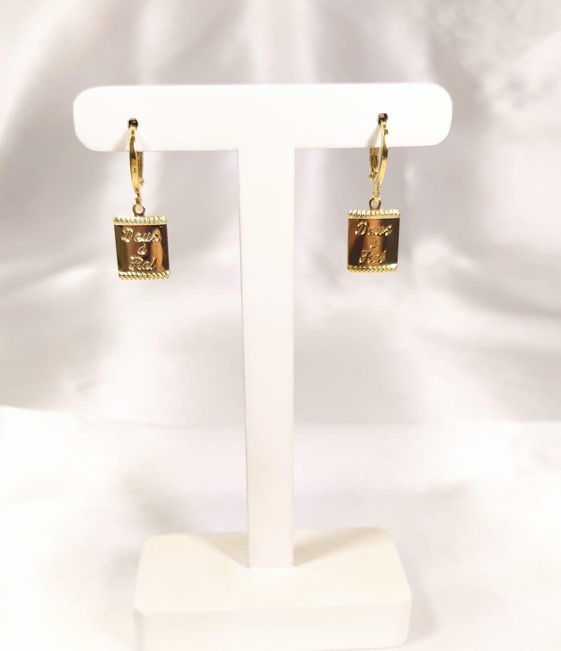 ARGOLA CLICK PLACA QUADRADA DEUS E FIEL