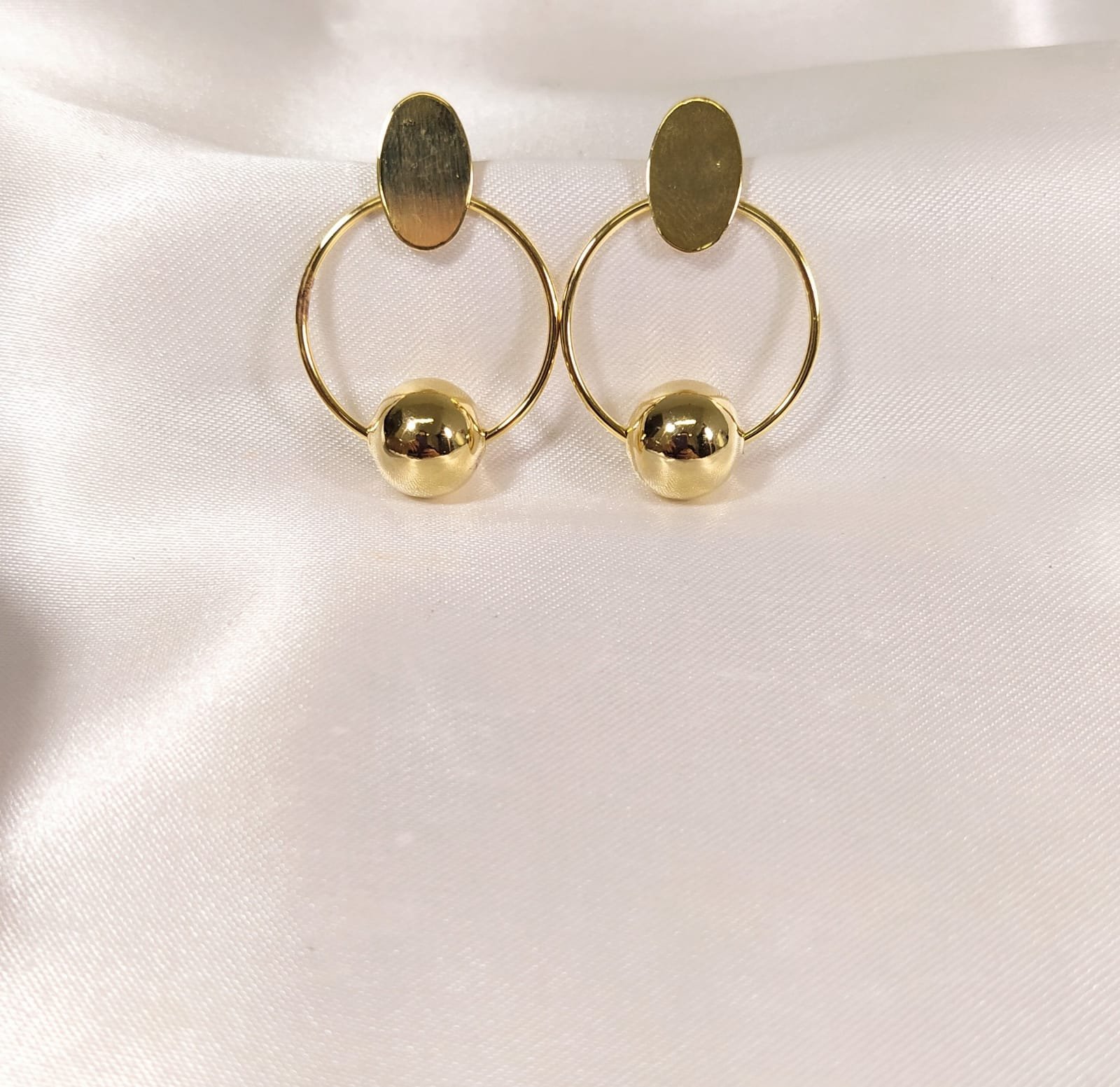 3. BRINCO CHAPA OVAL E ARO COM BOLA DE LATÃO