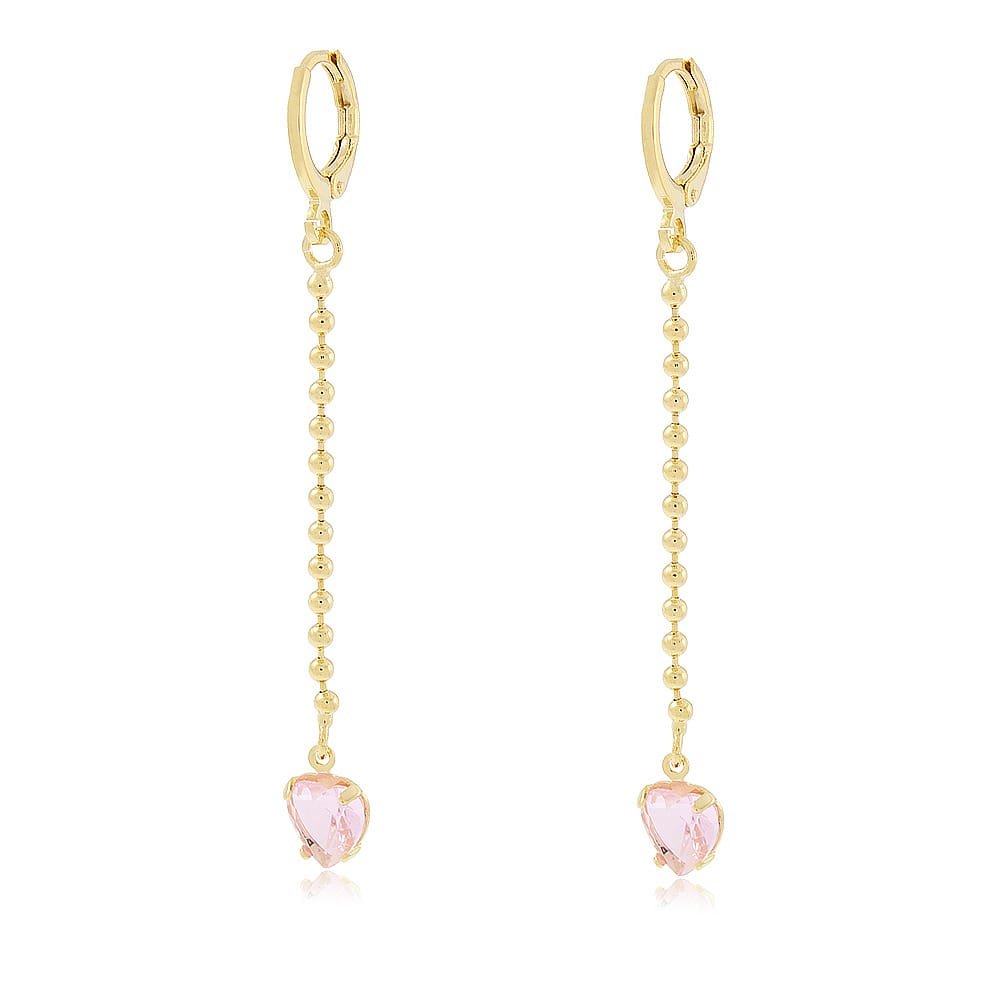 2. BRINCO DE ARGOLINHA CLICK COM CORRENTE DE BOLINHA E ZIRCONIA DE CORAÇÃO