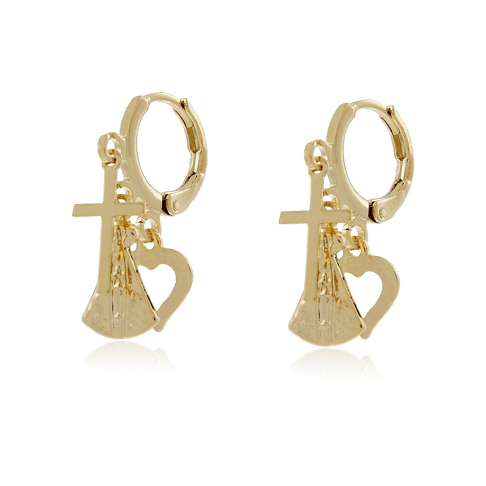 BRINCO DE ARGOLINHA CLICK CRUZ , NS APARECIDA E CORACAO VAZADO