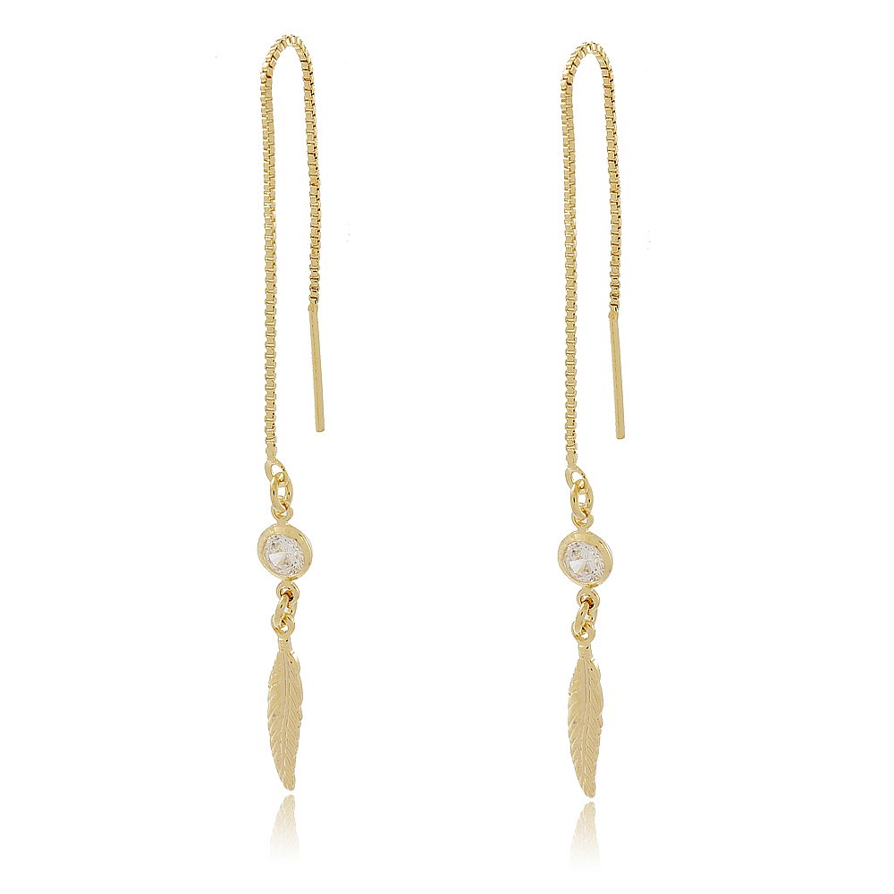 3. BRINCO FIO AGULHA PINGENTE DE PENA