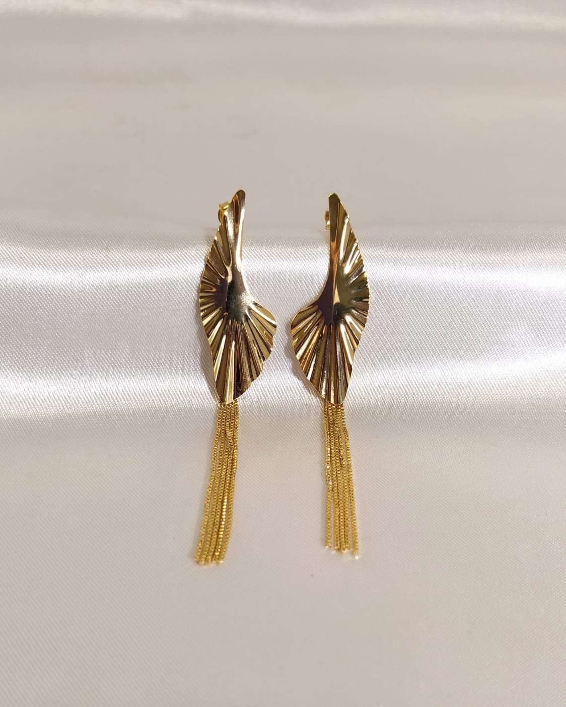 Brinco Franja Orgânico Asa 4,5cm Com Corrente de 5cm