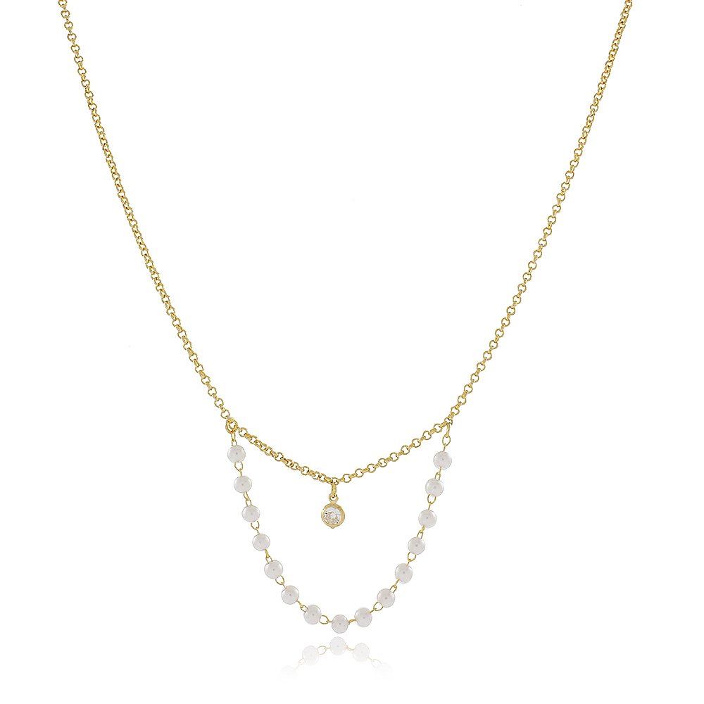 COLAR COM PEROLAS E ELO PORTUGUÊS ZIRCONIA 4MM-40 CM DE COMPRIMENTO