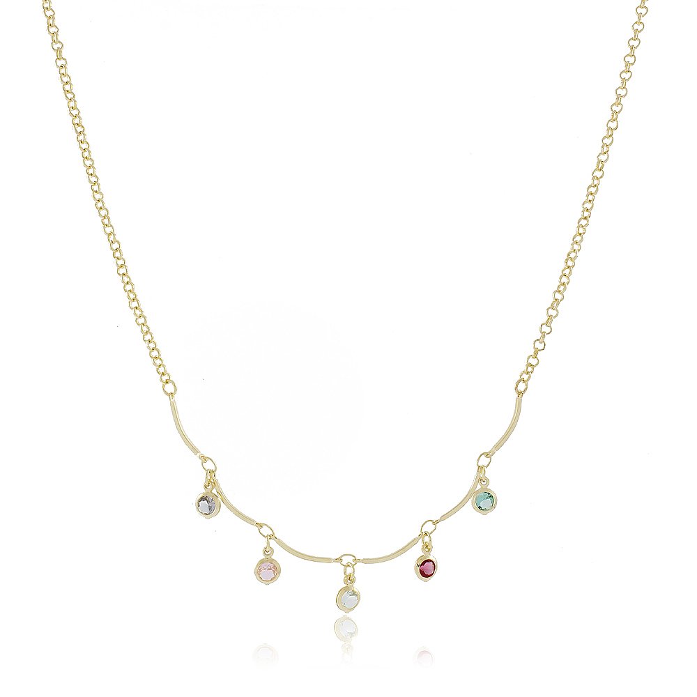 COLAR COM ZIRCONIAS COLORIDAS-45 CM DE COMPRIMENTO