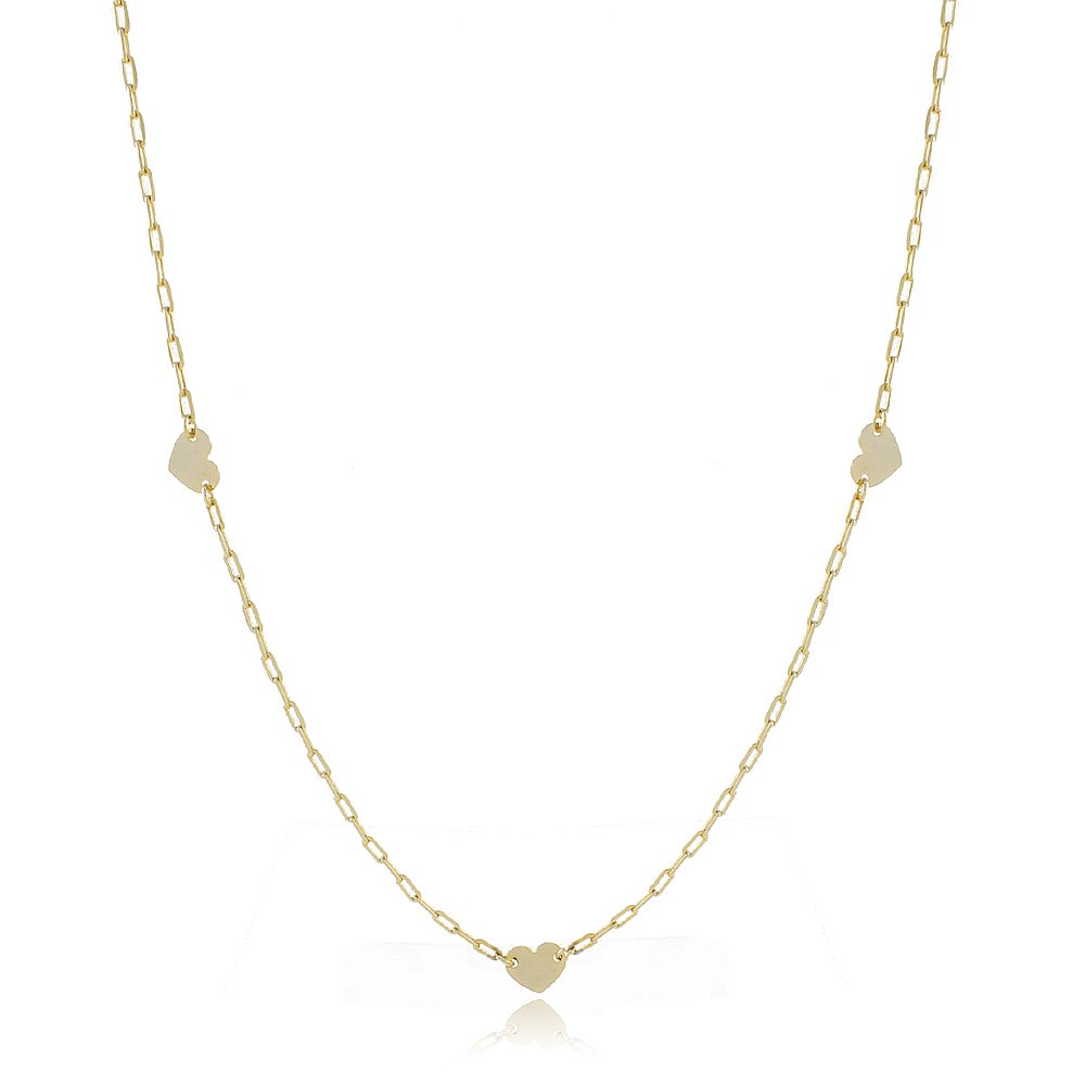 COLAR COM 5 CORAÇÓES INTERCALADO-55 CM DE COMPRIMENTO