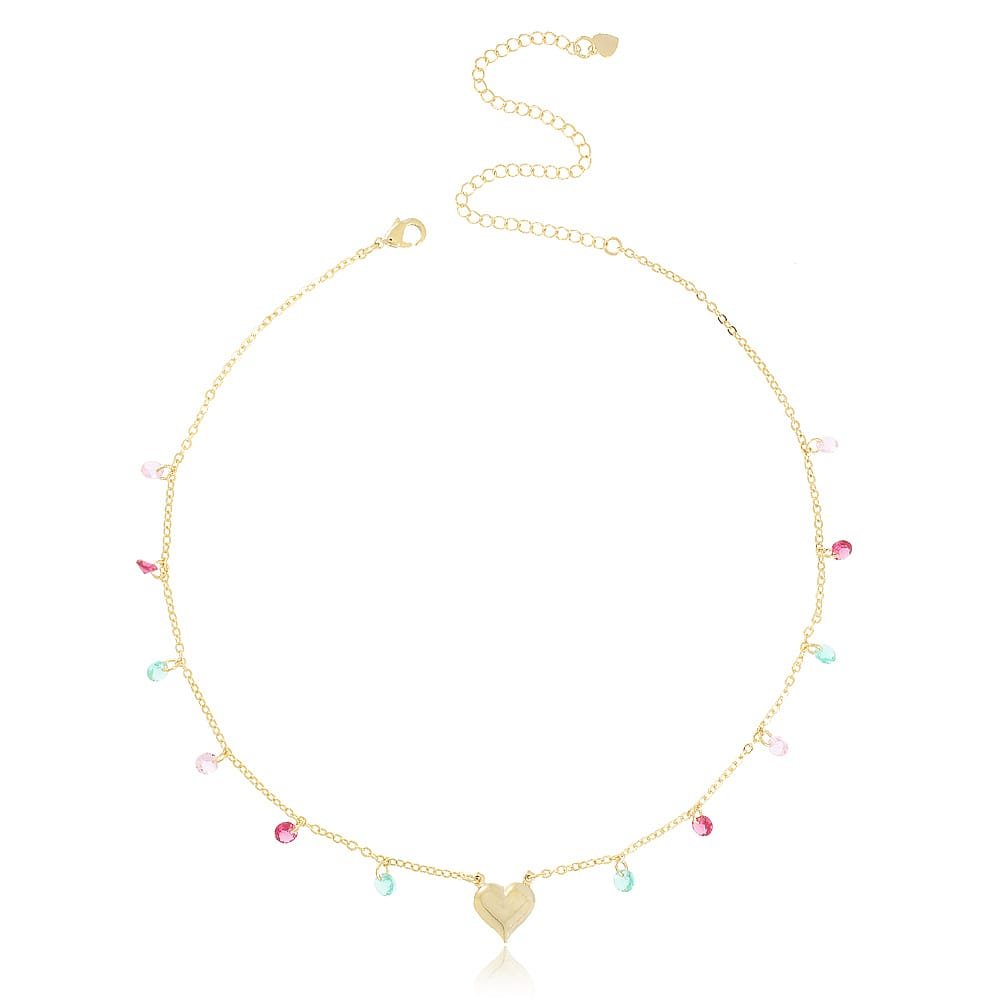 COLAR COM CORAÇÃO E MINI ZIRCONIAS COLORIDAS-40CM DE COMPRIMENTO