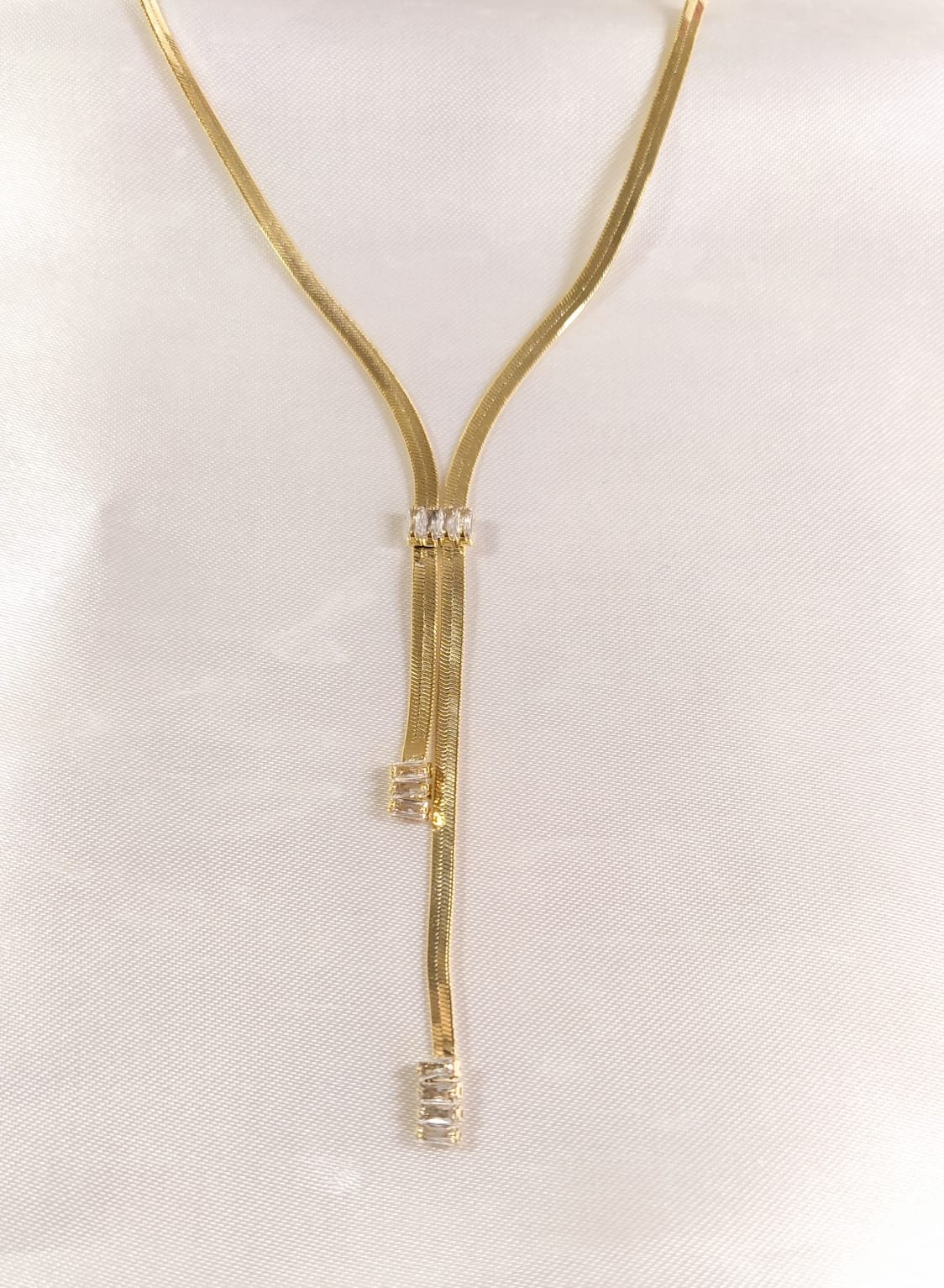 3. COLAR CORRENTE FITA LAMINADA COM ZIRCONIA BAGUETE 60CM