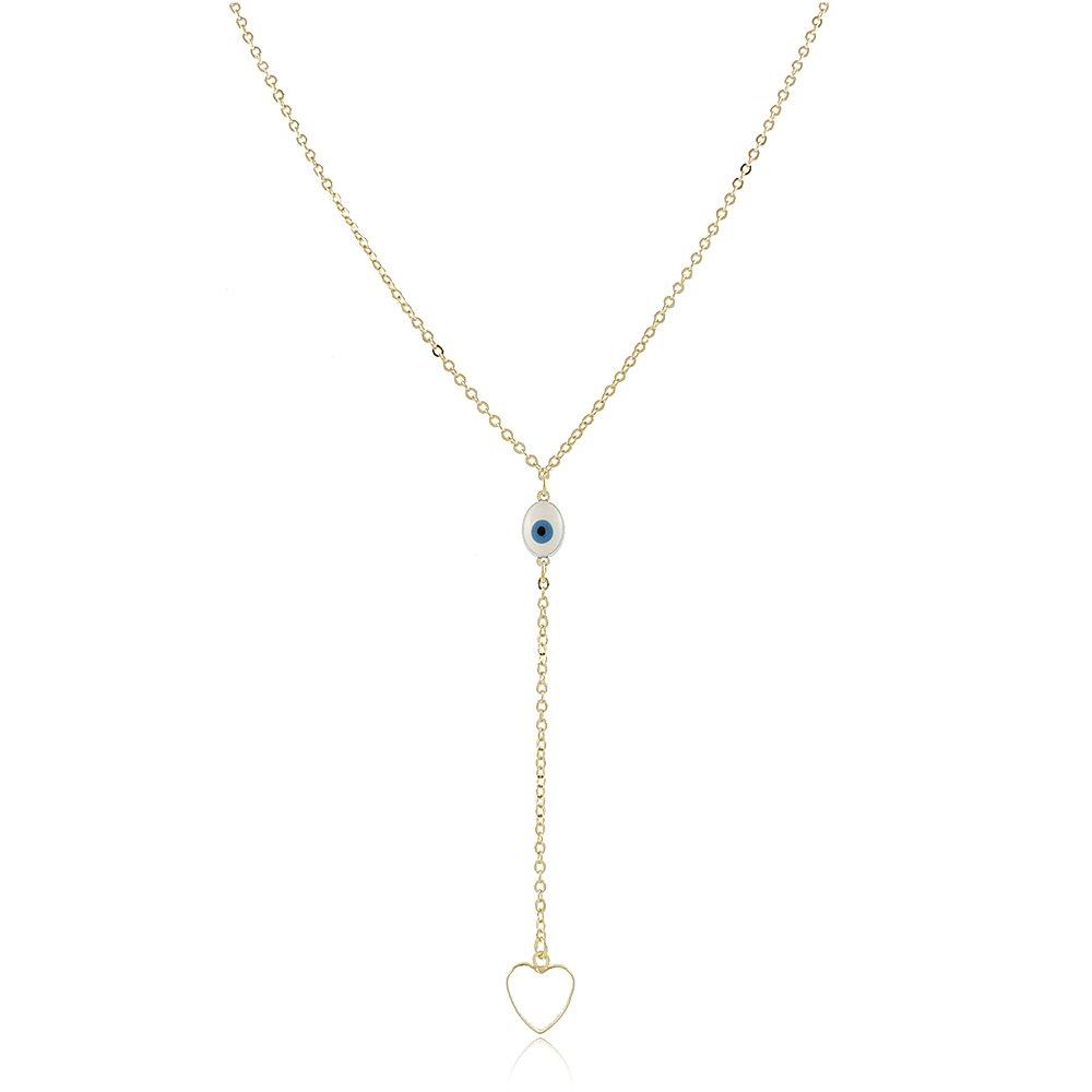 3. COLAR GRAVATA DE OLHO GREGO E CORAÇÃO -45 CM DE COMPRIMENTO