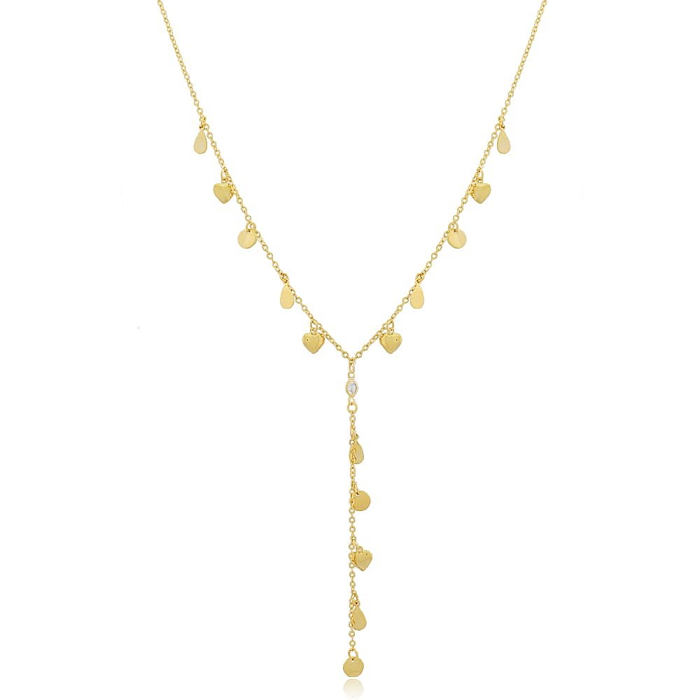 COLAR GRAVATA GOTA, CORAÇÃO E MOEDA -40CM